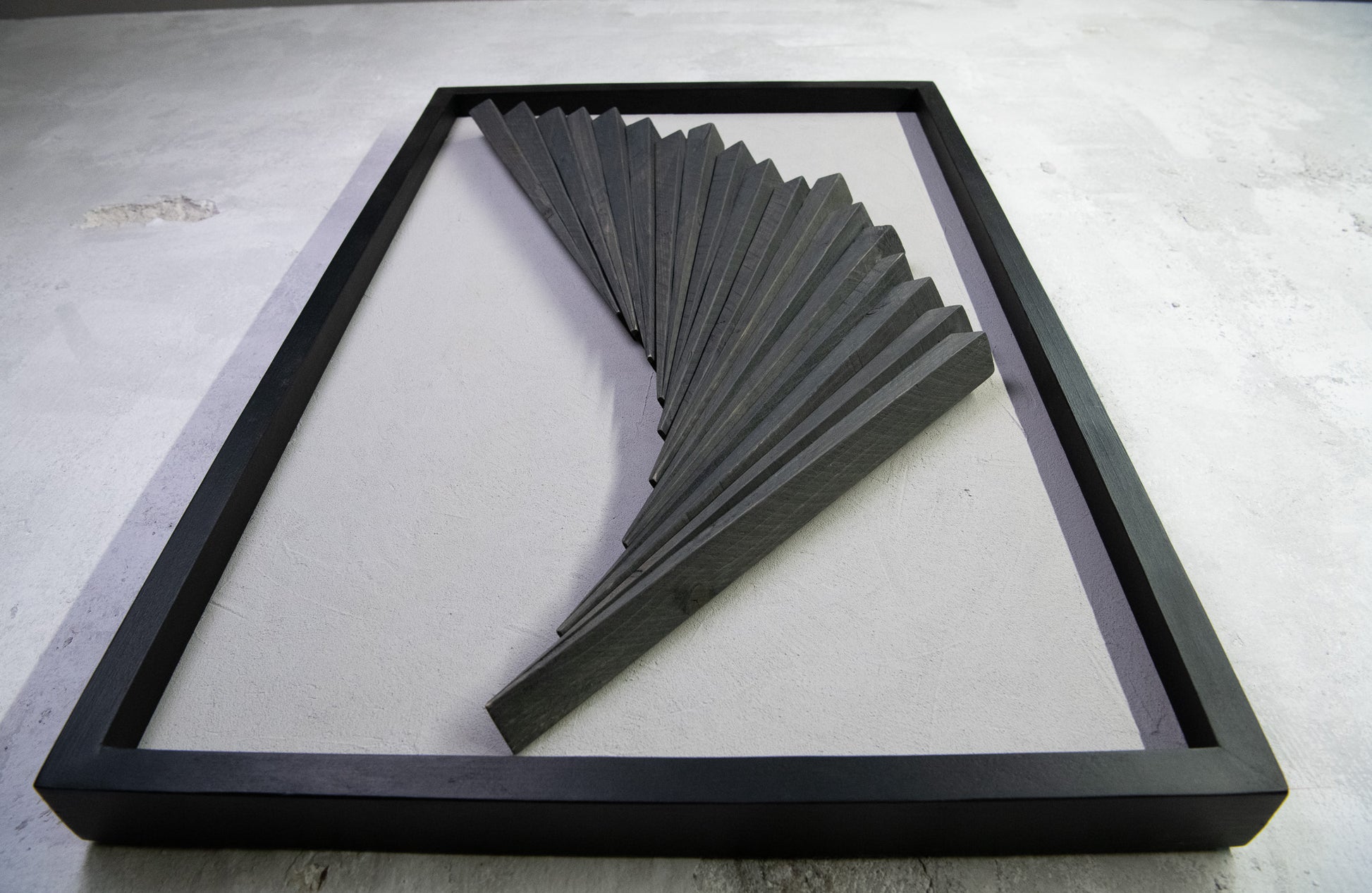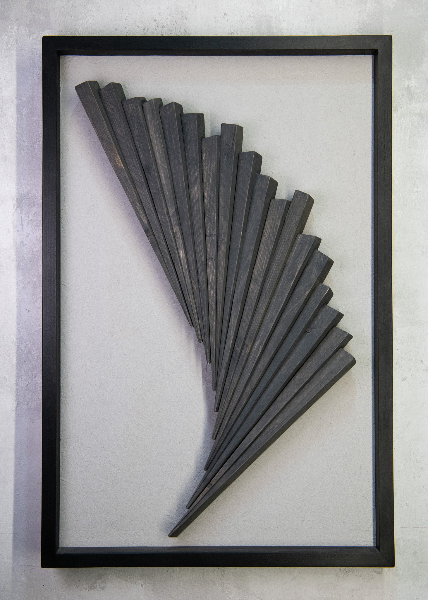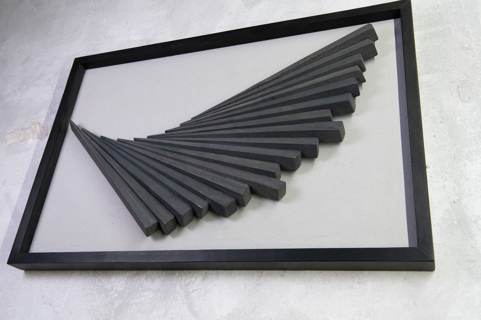 Αυτή η αφηρημένη ξύλινη σύνθεση αποκαλύπτει την κρυφή αλήθεια της προοπτικής: όλα είναι ένα, κι όμως αλλάζουν ανάλογα με το πώς τα κοιτάς. Κάθε ξύλινο στοιχείο υψώνεται και χαμηλώνει ρυθμικά, σαν μια σιωπηλή κίνηση παγωμένη στον χρόνο, υπενθυμίζοντάς μας ότι η αντίληψη δεν είναι ποτέ σταθερή αλλά πάντοτε ρέουσα.