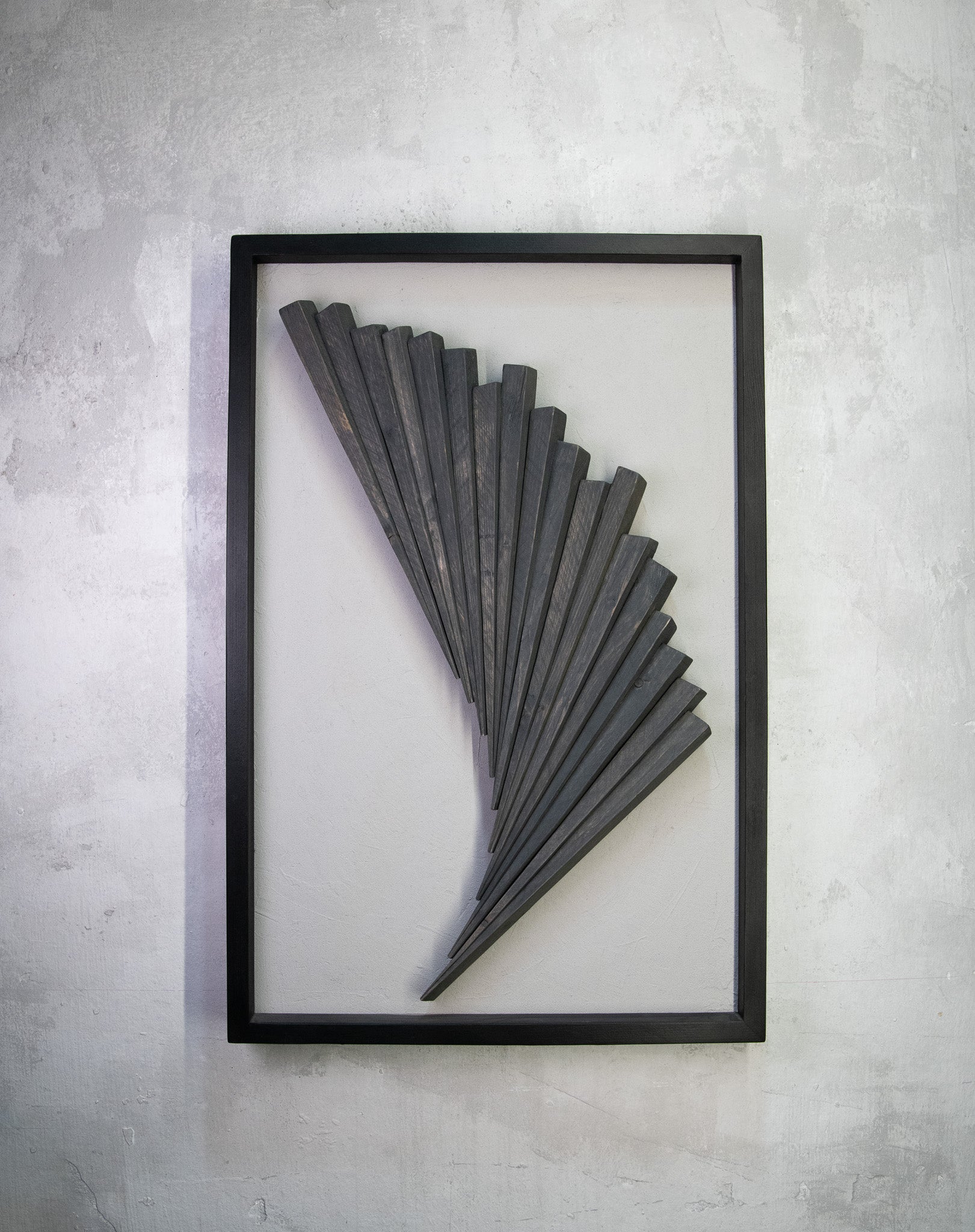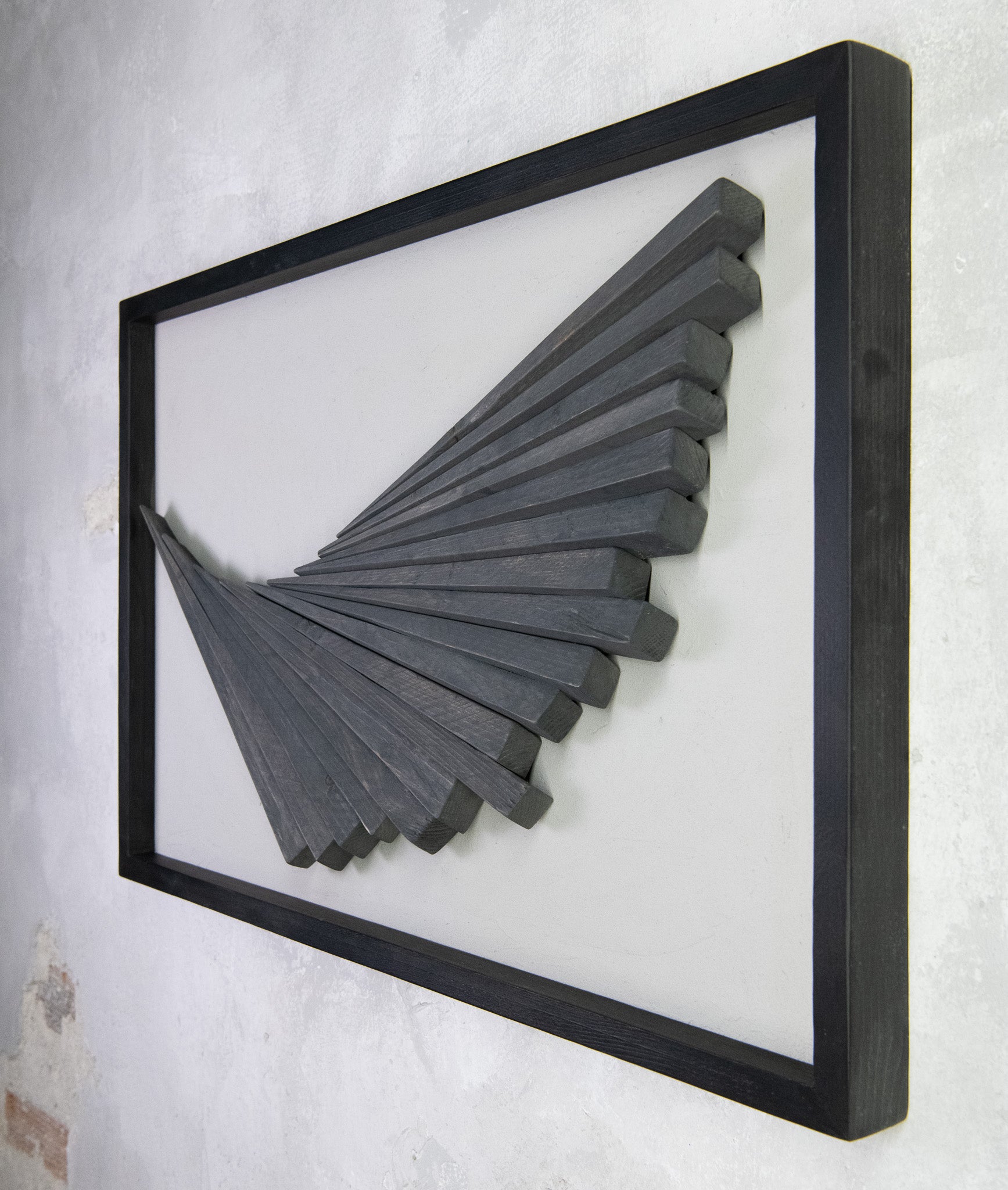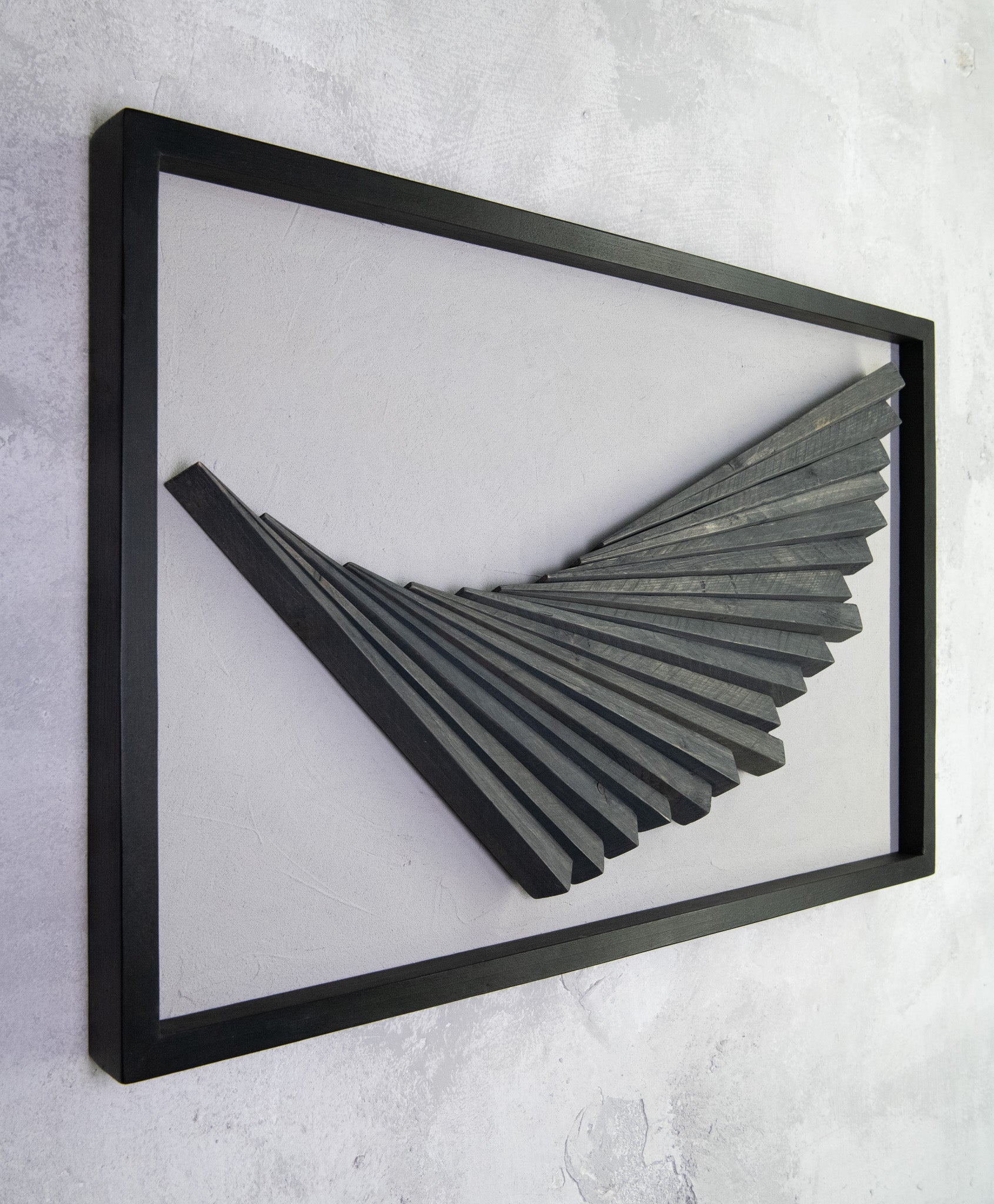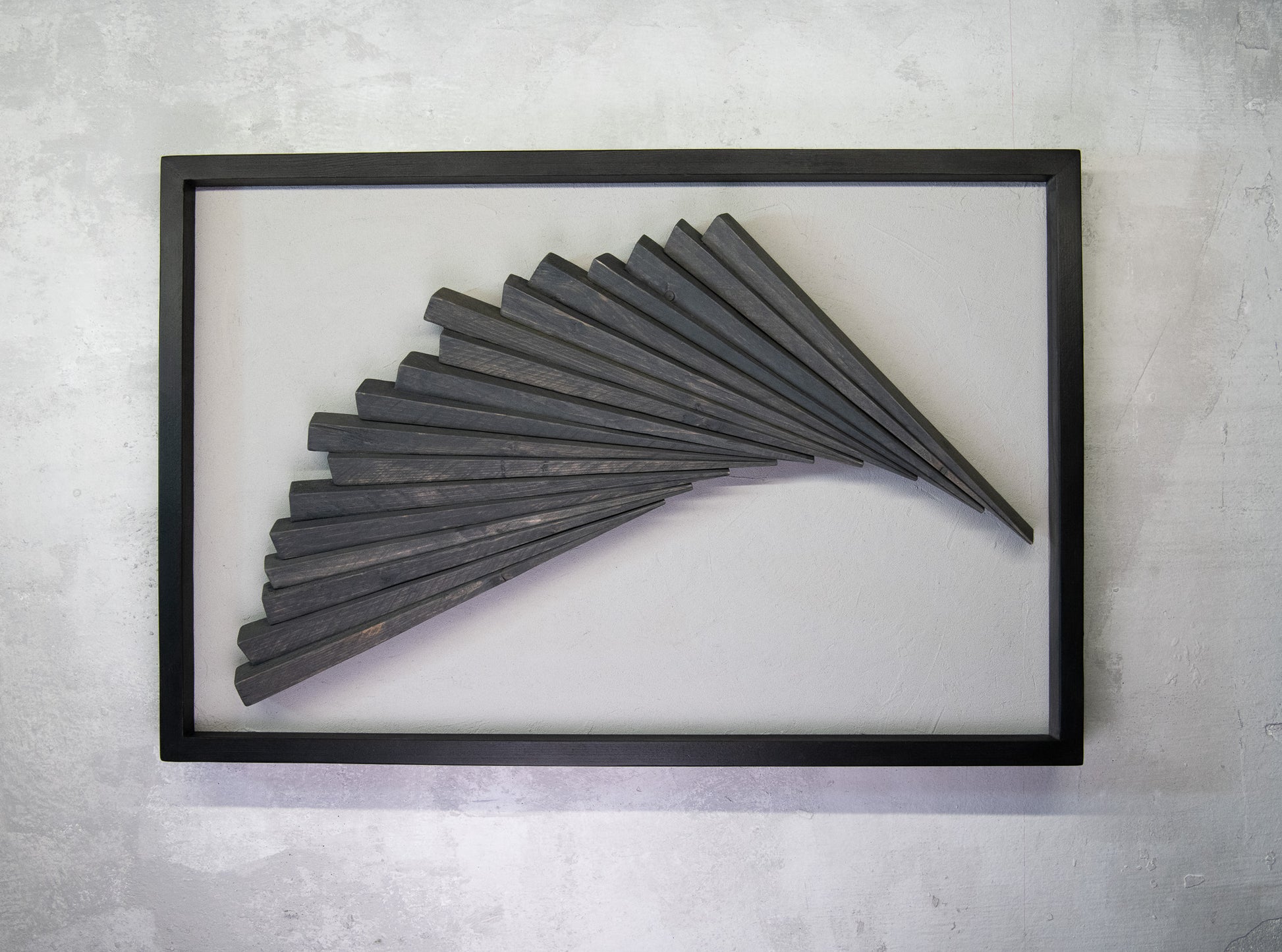 Αυτή η αφηρημένη ξύλινη σύνθεση αποκαλύπτει την κρυφή αλήθεια της προοπτικής: όλα είναι ένα, κι όμως αλλάζουν ανάλογα με το πώς τα κοιτάς. Κάθε ξύλινο στοιχείο υψώνεται και χαμηλώνει ρυθμικά, σαν μια σιωπηλή κίνηση παγωμένη στον χρόνο, υπενθυμίζοντάς μας ότι η αντίληψη δεν είναι ποτέ σταθερή αλλά πάντοτε ρέουσα.