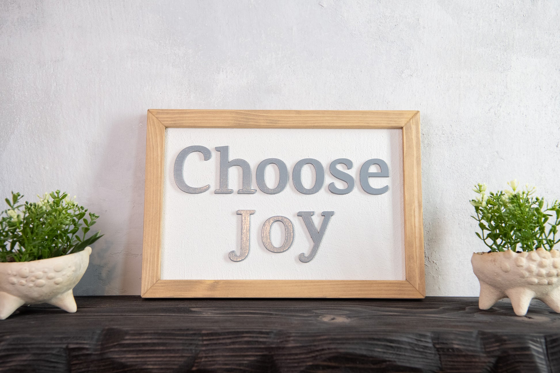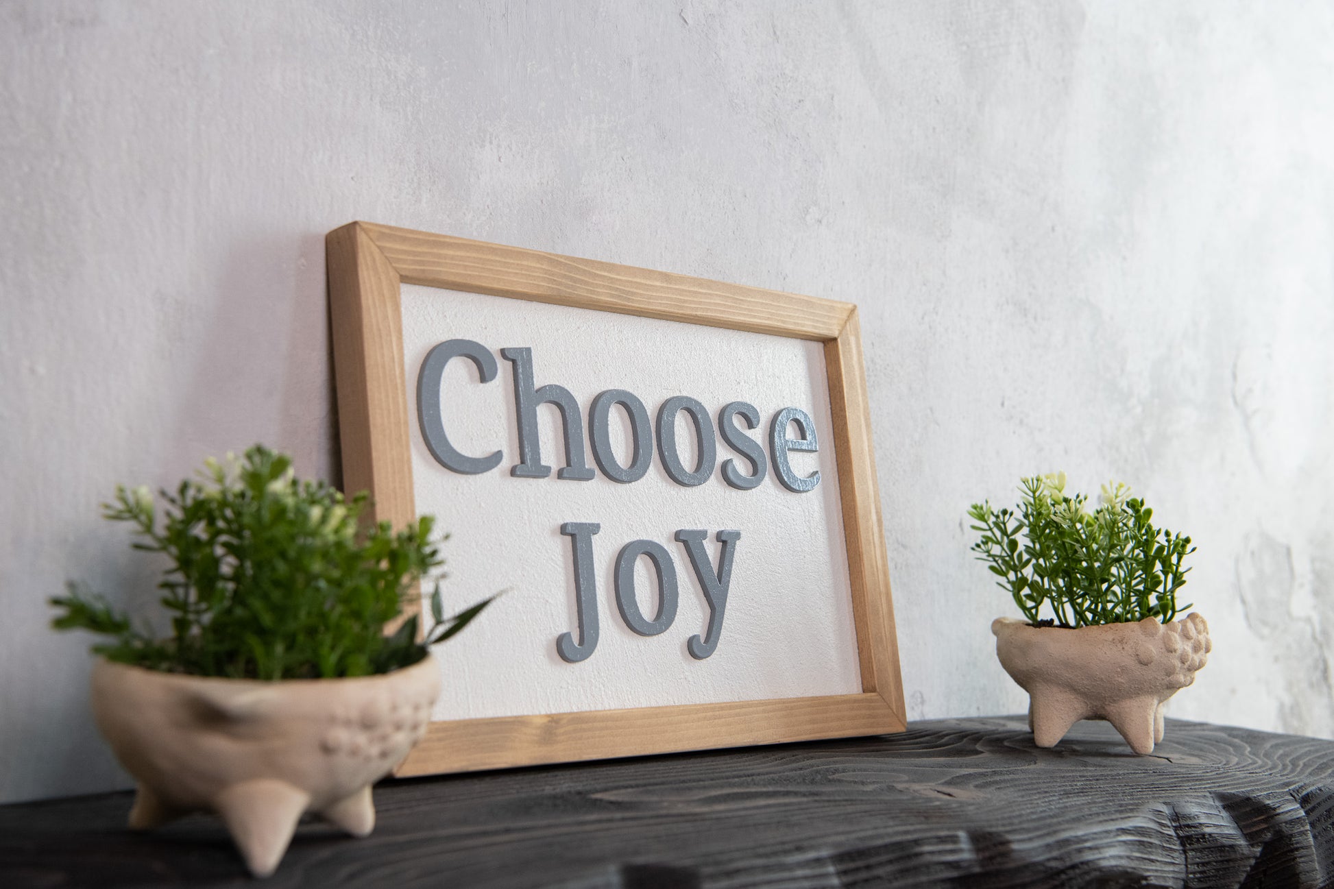 Η χαρά δεν είναι κάτι που ψάχνουμε έξω – είναι μια επιλογή που κάνουμε κάθε μέρα. Αυτή η χειροποίητη ξύλινη πινακίδα με το quote “Choose Joy” είναι μια γλυκιά υπενθύμιση να αγκαλιάζουμε την θετικότητα και να ζούμε το παρόν. Ιδανική για να φέρει αισιοδοξία και φως στο σπίτι ή στο χώρο εργασίας.