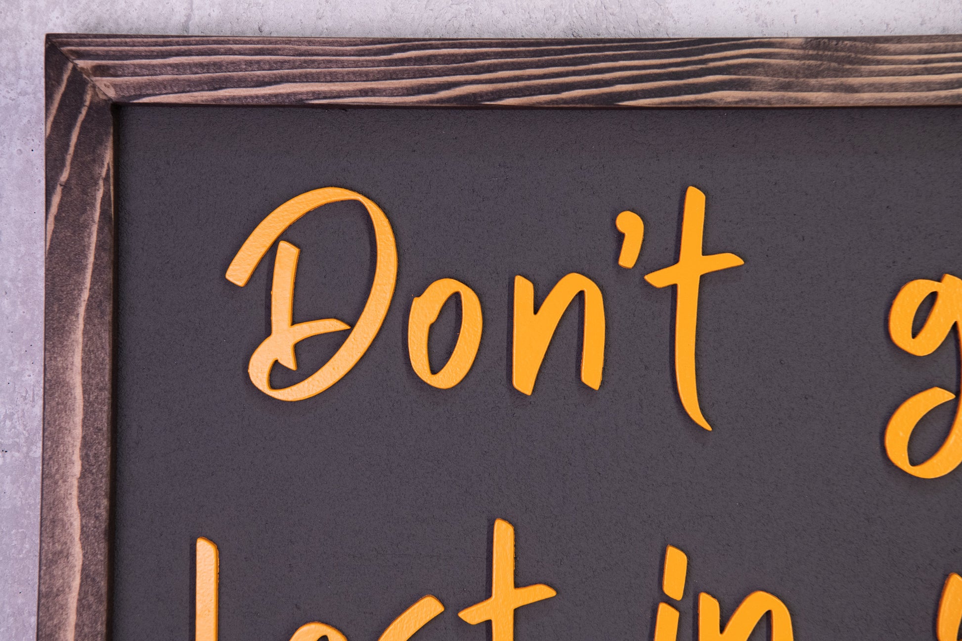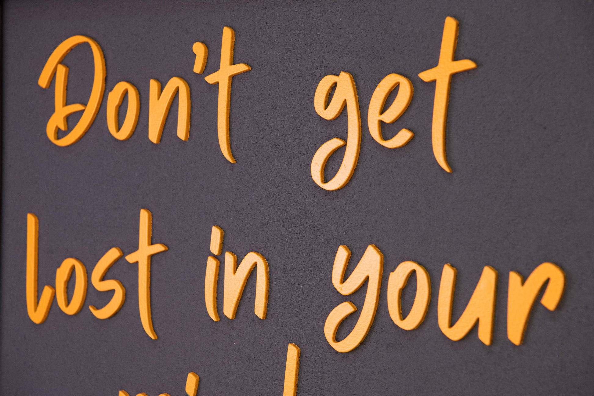 Ξύλινη Πινακίδα Τοίχου – Don’t Get Lost in Your Mind – Χειροποίητη με Εφέ Τσιμέντου