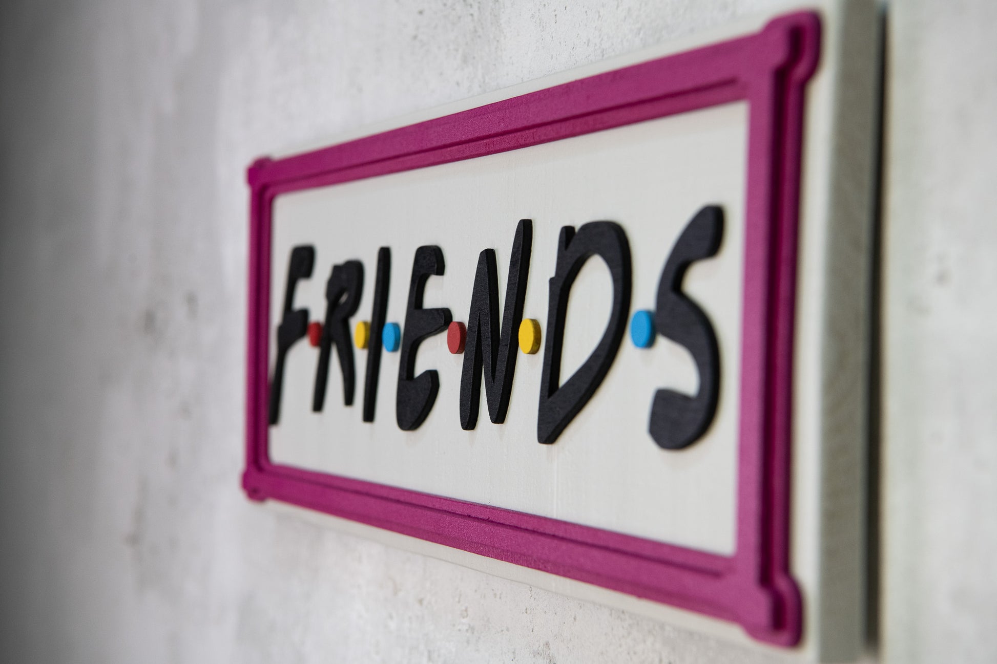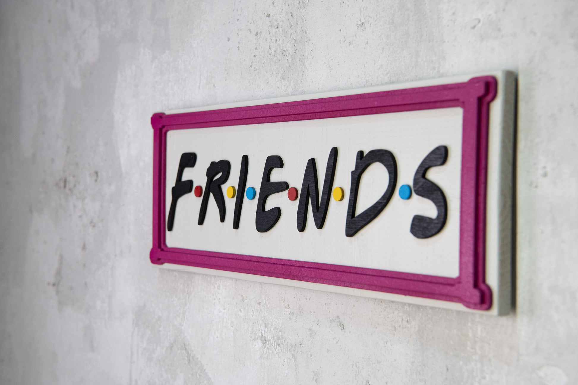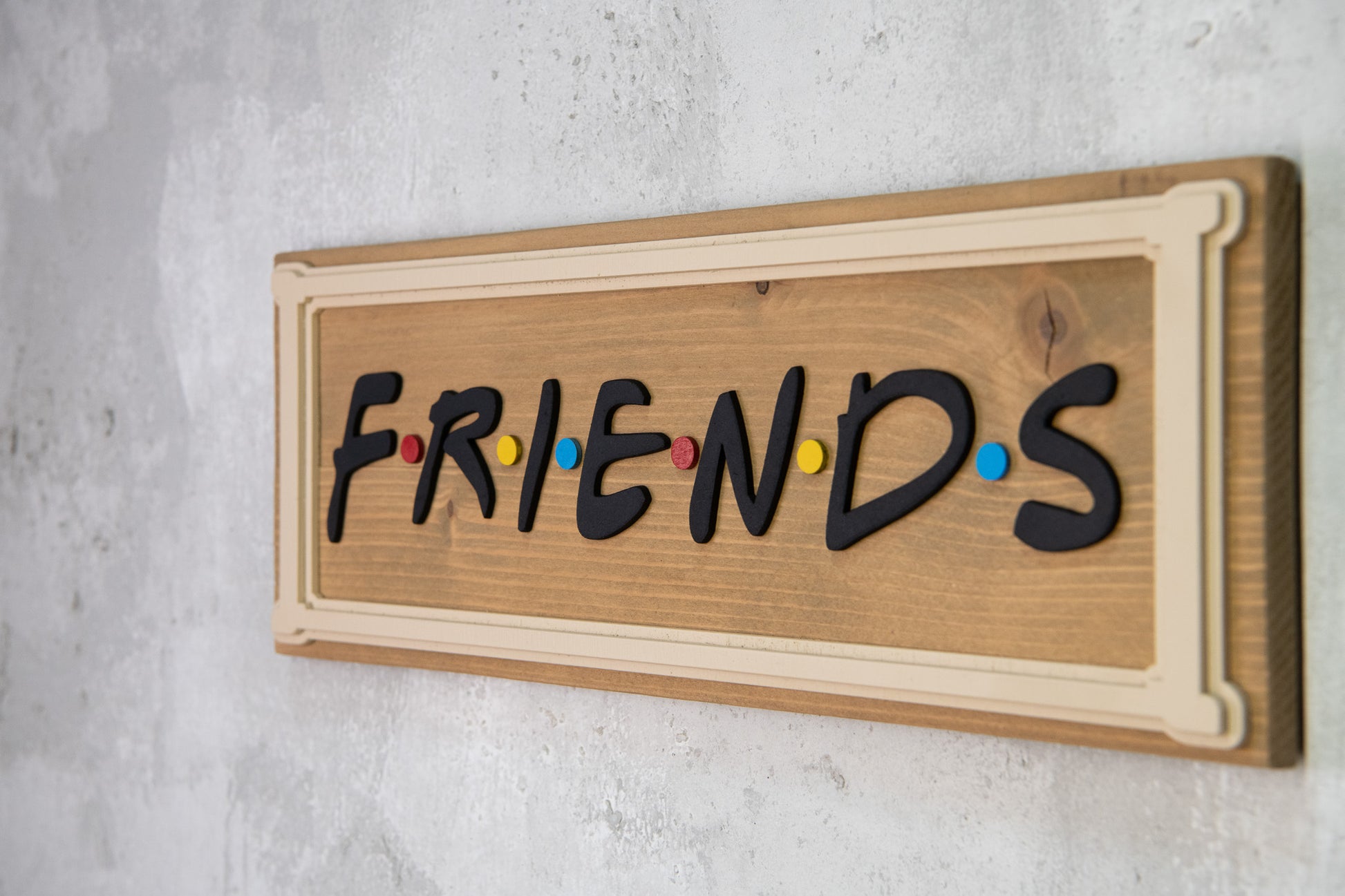 Φέρε την ατμόσφαιρα της αγαπημένης σειράς FRIENDS στον χώρο σου με αυτή τη χειροποίητη ξύλινη πινακίδα τοίχου. Εμπνευσμένη από το θρυλικό λογότυπο, αποπνέει νοσταλγία, φιλικότητα και θετική ενέργεια.