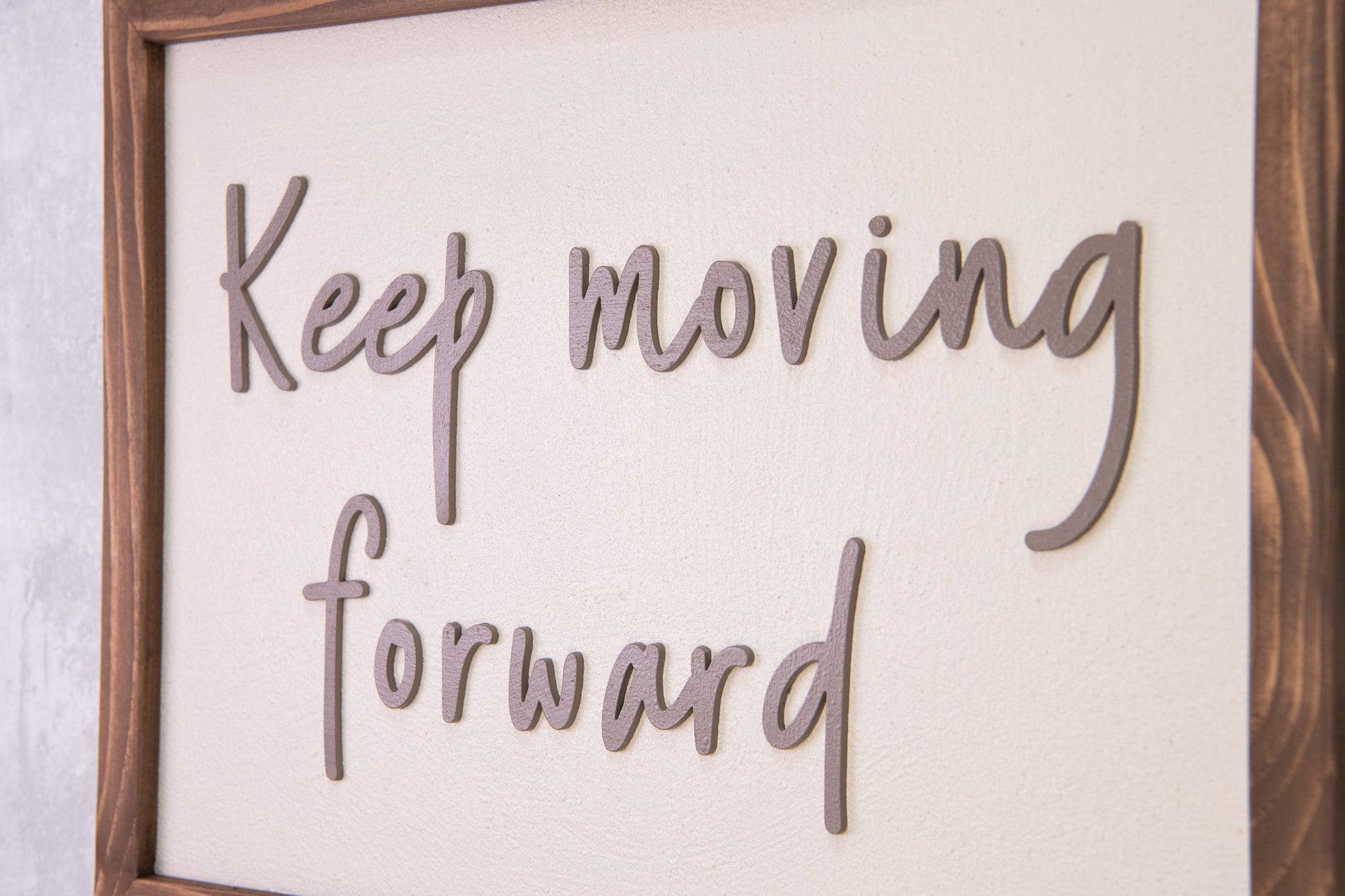 Ξύλινη Πινακίδα Τοίχου – Keep Moving Forward – Χειροποίητη με Εφέ Τσιμέντου