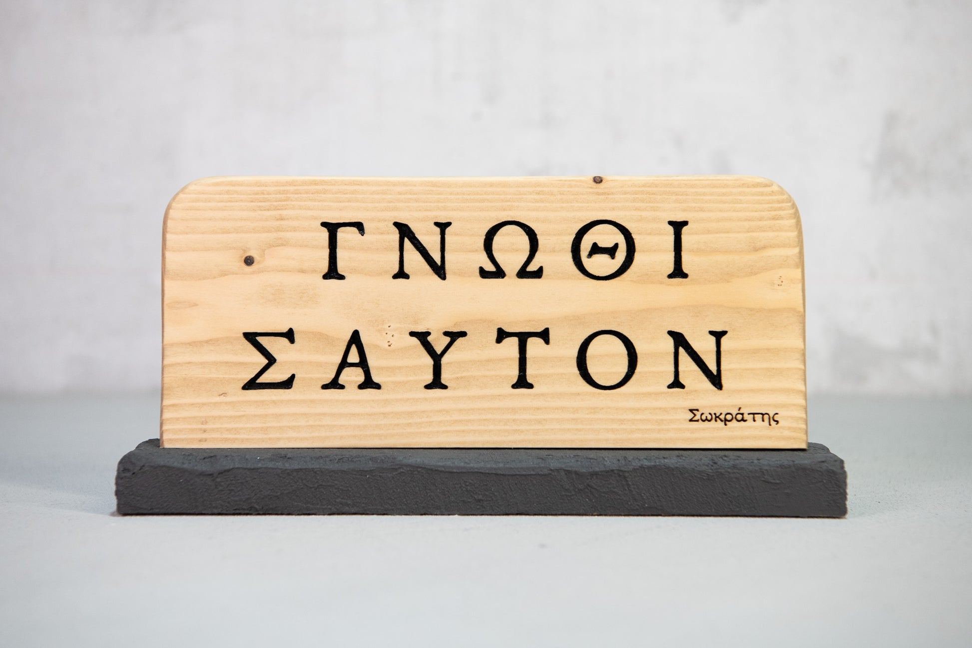 Handmade Wooden Greek Quote Sign – “Gnothi Seauton” by Socrates